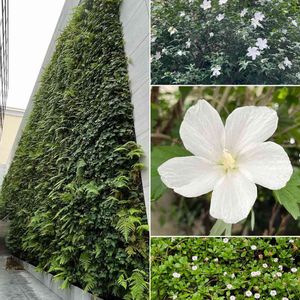 お出かけ先にて 以前にも見た某店舗の裏側の緑化 合間からシダがいい感じに茂っています その近くの路地には真っ白なムクゲがたくさん咲いていて さらに近くの店の植込みにはヒメイワダレソウが広がって可愛く咲いていました