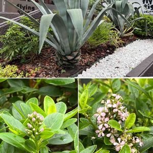 お出かけ先にて 半年に1度の通院でした 終わるといつもの近くを植物散策🍃🌿🌳 リュウゼツランが大きくなって来たのを毎回見てはニヤニヤしています🤭 同じ植え込みに終わりかけの花とひと茎だけ残った蕾を発見 エスカロニア ピンクエル🤔というのかしら? 綺麗に咲いている時に見たかったな😚
