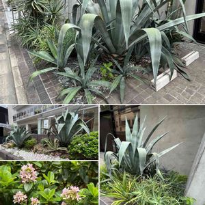 通院の帰りに〜その3 短い距離で大きなアガベが何株も😆 小さな小さな花達も可愛くて😚 都会の真ん中で植物にへばり付き撮影する植物オタク丸出しの私(笑)