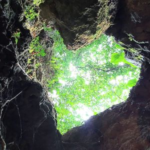 〜 ちむどんどん🎶沖縄 ⑤ 〜 小雨降る中ホテルを出発し2日目の最初の目的地は「CAVE OKINAWA」という沖縄本島中部にある鍾乳洞です🔦 2018年に公開されたばかりの新しい鍾乳洞で、ガイドブックにも載ってるか載ってないかの場所ですが口コミ評価が高く、そして鍾乳洞なので雨も関係なく楽しめます。 いや、むしろ雨で鍾乳洞の出入り口付近の木々が濡れてる方がジャングル感があってプチ探検気分♪ 駐車場と洞窟出入り口の道中で驚いたのが、私が家で育てている観葉植物の「クワズイモ」がいたるところに生えていて、しかもその大きさです😱 後ろの写真で私の腕も一緒に写ってますが大きい葉っぱは60㎝ほどもあり、まさにトトロが傘の代わりに持ってたクワズイモの葉っぱのようにちょっとした小雨なら雨を 凌げそうな感じです🌱 さらにクワズイモの花を初めて見ることが出来て感動🥳 そして鍾乳洞から出口を見上げるとハート型の岩の壁の向こうに素敵な景色が🤩 穴場のせいか朝イチだったからか私たちの他には1組しかお客さんもいなくて静かにプチ探検を楽しめました🎶