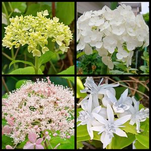 アナベル まだグリーンのも あります。 ピンクも中の小花が たくさん咲いて 可愛いです。 常山紫陽花ホワイト 寄せ植えのも咲いて きました。