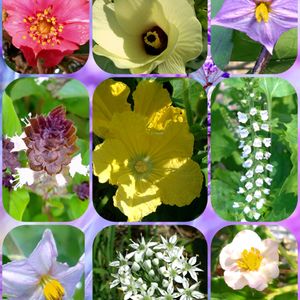 おはようございます☀️ やっと朝夕涼しさを感じられるようになりましたね、ヤレヤレです😅 今畑に咲いているお野菜のお花です、左上から時計回りに、四季咲きイチゴ、オクラ、長茄子、青紫蘇、四季咲きいちご、ニラ、紫茄子、シナモンバジル、ミニ冬瓜です、オクラは毎日20〜30のお花が咲くので、収穫しては配るの繰り返しです🤣🤣 ランナーが出ていたイチゴを、夏の水きれで2番目の子を枯らしてしまいました😭 1つずつポットに入れなかった私が悪い😭 これから出てくれると、3番目の子が次の苗になるそうなので、無事に育ってくれますように🙏