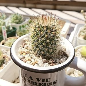 なかなか可愛い❤︎"いい眺めだなぁ〜🐸☕️ 皆さんのpicを見て欲しくなったカルメナエ トゲや花色もいろいろあるとか… このコは何色なんだろ🤔丸い形が可愛くって何もわからないままポチッと👇💕 今のところ元気そう😊💗