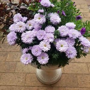 キーっ(*`Д´)ノ!!! なんて美しい💜💜 一目惚れで淡いパープルの アスター買ってしまいました。 どんどんモコモコ咲いてね🤗💓
