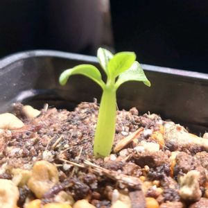 パキポディウム実生 ウィンゾリー✕イノピナツム 5日目で、ようやく芽が出てきた。♥ 3つ芽が出てたけど 種まき用の土を表面に使った鉢が 発芽早かった。🌱🌱🌱