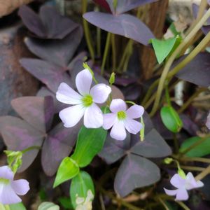 オキザリス💜🩷💜 南天の足元で頑張って咲いてます🥰