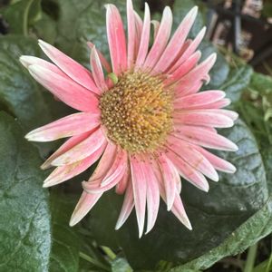 ♡ガーベラ♡ モリモリの葉っぱの中から☘ ̖́- 可愛らしいピンク色のお花🌸 細い花びらがたくさん❣️❣️ 優しい感じのお花です⋆⸜💗⸝⋆