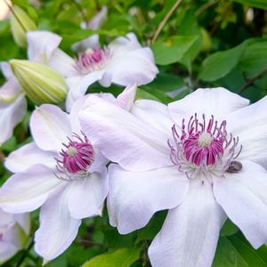 *薄いピンクのクレマチス 古株さん、毎年、紫陽花に絡んで咲いています