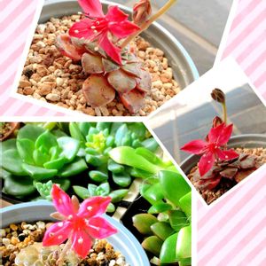 花芽が上がりそうな子いくつかお迎えしてましたが開花までとても時間がかかりますね カクトロコさんのクラバツムお花が二つ咲いています 右のお花と左のお花おしべの色が違うのはなんでかなーでもとても可愛い😆 多肉のお花可愛すぎます〜💚