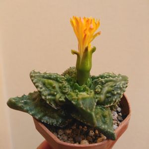 おはようございます。 雨もあがり曇り空の朝です。 名前のわからない多肉さん かわいい黄色の小さなお花が咲きました🌼🌿💛 多肉さんのお花も、いろんな形や花の色がありますね。 はまりそうですね〜😙