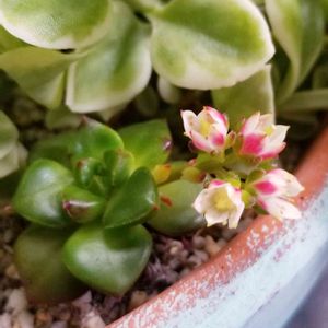 多肉さんのお花って こんなに可愛らしい子も🌸 小さい多肉さんだったから、花が咲くとは思ってなくて、隣の葉っぱをどけたらお花が顔を出してびっくり!!(๑°ㅁ°๑)