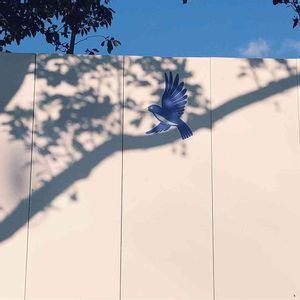 調布飛行場側道にて。 木の影と壁の鳥の絵がシンクロ😊