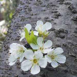 ③🤳3/17今年のプラムは蕾がい~っぱぁい☺️ 🤸 🤸 🤸 3/24開花を楽しみにしていたのに携帯を家に忘れ 写すこともできず真っ盛りのプラムを🍙食べながらながめました。 4/4にスマホを携帯して🤳 ほとんどが花びら散って蕊状態😩② やっと見つけた幹に付く花①