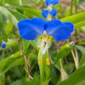 畑のゴミ山の裾に普通のツユクサよりちょっと大きめな露草😘 投稿しょうとして😲 これから、「Choo Choo TRAiN」を踊りだすかのように アップした子の後ろに並ぶように写った露草たち😄 絵本白雪姫の中の7人の小人にいそうな露草😁 もう、ず~っと暑くって🥵 午後も草取りしたら危険⚠️なので午前中だけで切り上げました😅
