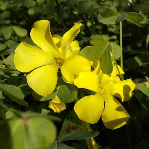 畑の周りで オオキバナカタバミが咲き出しました。 梅の木と山茶花にガードされて 🤳12月21日