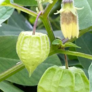 ヒロハフウリンホウズキ (広葉風鈴酸漿) 落花生の畝に生えていました😃 ホオズキの今は緑色の稜が紫褐色に成るのがみたいな☺️ 義姉に「抜かないでね!」というと「旦那に言っとく!」と言ってくれた☺️ でも心配だな😱