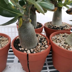 パンパンに太りすぎて、素焼き鉢を破壊したオベスムさん。 塊根植物にはプラ鉢が無難かもしれません。