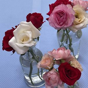 オスカルフランソワ(白いバラ)と薄いピンクのミニバラが咲きましたのでいけてみました🙏🙇♂️😊👍