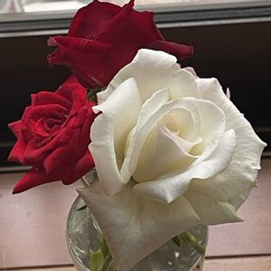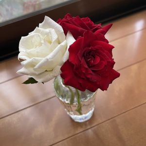 オスカル(白)と赤いバラを対にしてみました🙏😊👌🙆♂️