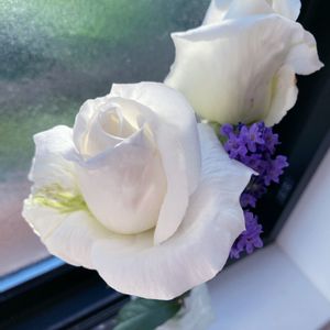 我が家の生垣 🌹四季咲きバラの白薔薇 品種 🇫🇷オスカル フランソワ🤍 蕾の間 ☔️雨に晒されていましたが 無事に咲いてくれました。 2枚目、🌹京成バラ園で咲くオスカル フランソワ🤍🤍