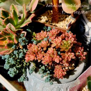 pic1⃣ Aeonium sedifolium f. variegata アエオニウム 小人の祭り錦 夏に焦げたような色になってしまってたが、 (高温障害?!) 気温が下がってからは、綺麗な色を取り戻した小人の祭り錦ちゃん😍 同居のダシフィルムとの相性も良き😆👍 pic2️⃣ Aeonium 'Roscoff Variegated' アエオニウム・ロスコフ錦 我が家に来て、早1ヶ月 少し色濃くなってきました🩷 🏷19日はピンクの日! 🏷ピンクワールドへ ようこそ 参加させていただきます(⋆ᴗ͈ˬᴗ͈)” アエオニウムが活き活きする季節 これからが楽しみです☺️🎶