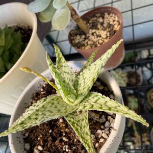 アロエ スノーフレークを植え替えして1か月。たまに塀の上にちょこんと置いてある鉢のようになるのを目指してます。モリモリ増えてくれー