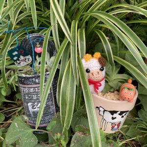 🏷️ 牛の日 🏷️ 錦の日 かえる♡さんからのリメ缶 ねこさんからの牛さん 45さんからのリメ鉢 ジュンさんの編み編み牛 クニさんからの牛ベコ 柴犬小夏さんのピック 繋がりに感謝です✌︎('ω')✌︎