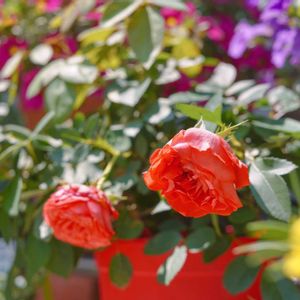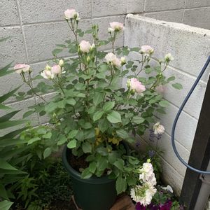 バラ日誌 2024.0624(月) スペース的に、もうバラは買えないので 最近はミニバラを集めはじめました。 ミニバラの良いところ ・スペースをそれほど取らない ・専門店ではないお店で不意に出会う楽しみがある ・値段が草花並み ・育て方や世話の仕方は大抵大きいバラに準ずるので、ついでに消毒や追肥が出来る ・かわいい鉢に植えられる あとは。。🤔 みなさん何を挙げますか? 1枚目 トゥルーブルームのトゥルーパッション 咲きました。 胡椒の香りということですが よく分かりませんでした💦 花色が赤いケースと同じだなぁ😅 トゥルーパッションのお隣の タマラ コルダナ 3本あったうち1本枯らしましたが、もりもり元気になりました。 コルダナのすごいなと思うのは、ついた蕾が全て咲いてくれること。あと、この子は花持ちがとても良い👍 購入直後にハゲ散らかしてしまった時、ミニバラを持っている花友のteto flowerさんや romiさんに、「コルダナは強いから大丈夫だよ」って言われた通りだと今すごく納得しています。 横浜イングリッシュガーデンで購入したウェルカムスティックを挿しています。 2枚目 フォーエバー サンレモ お花の開花率は今のところ5割💦 ひとつ咲くと次の蕾は開かずにくしゃります💦 今年のGWに買ってきたばかりのミニバラなので、次の開花に期待します。 後ろは見切り品でお迎えしたカリブラコア セレブレーション。 結構咲いています。咲くことが本能なのでしょうか。ハゲを隠して咲く姿が健気で胸が熱くなります😭 そうだ!明日感動肥料あげてみようかな🤔 3枚目 ER ムンステッド ウッド 二番花の続きが咲きました。 ERは切り戻しする必要がないようだけど この花のステム、長く突き出て細いもんなぁ🤔 花後は長めに切って、挿し木にしたいな。 廃盤なのでバックアップを取りたいのですよね。。 挿し木、ポトスしか成功したことがないので実戦あるのみ😅 4-5枚目 本日はロスアロマ クリームピンク 198円をお持ち帰り〜😄 香りのバラと書いてあります。 これ、コルデスローズでした😃 香りは。。購入時に香ったところ、確かに良い香りがしました。ミルラ系の甘い香りらしい。 緩効性の置き肥を毎月与えた方がいいらしい。 ミニバラはお花がよく咲くから肥料食いなのかな🤔