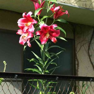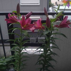 4月に球根を植えて、初めて咲いたスコーピオ。 直径20cm程あります。🎵 別名、レッドカサブランカ。🏡
