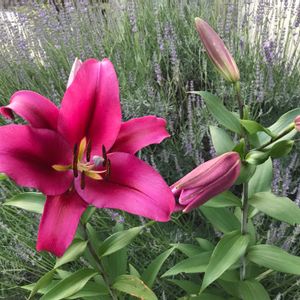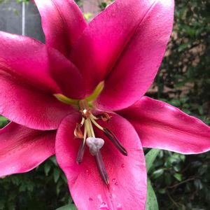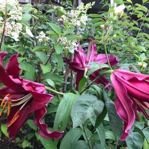 レッドカサブランカをアップで❤ レッドと言っても濃いめのピンクです 初めて見ました。✩*:゚・⑅*॰¨̮♡ 軽井沢レイクガーデンにて