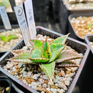 仕事なんてやってられるか! てことで帰りました。 1日遅れのアガベの日② ①血蟹 新葉は緑ですが、開いてくるとスポットが 出て紫になります。 ②金蟾 ウォーターマークもブツブツも、徐々に 出て…来ると良いな〜 ③白毫刺 葉が展開するにつれ、自分がイメージしている 白毫刺っぽく成りつつある…といいなぁ〜