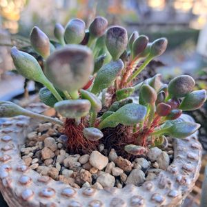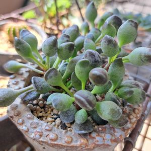 昨年の夏は ベランダ多肉棚で しっかり水切りして過ごせたのに… 今年の暑さはそれを 上回った😢 少し前から室内待避 なんとか溶けずに頑張ってます。