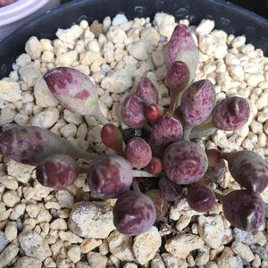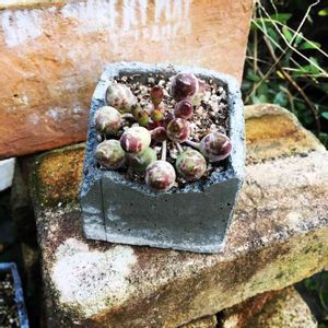 蜂に刺された指みたいになってる笑 パープルネックレスでもない こん棒でもない これはこれは インディアンクラブ セメント鉢(失敗作)との相性が抜群で喜んでるわたし 今日は色々植えたな