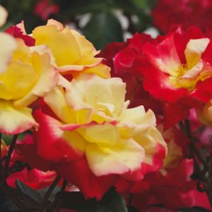黄色から赤への色の変化華やかな薔薇🌹チャールストン 🏷金曜ローズショー初参加させて下さい。😊