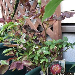 先月 花木センターで買ってきた新苗のチャールストン うどんこ病が出るようになって病気の場所 取り除いてたんだけど、なんか葉っぱの淵が黒くなってきちゃいました(´・ω・`) 多分ベト病ってやつですね💧 近くに置いていたピエールまで葉っぱの様子がオカシイ💦 これもベト病? チャールストンとピエールの間に置いておいたミニ薔薇は無事なのになんで‥ ピエールって病害虫に強い子じゃなかったの⁉︎(´;Д;`) 仕方ないのでダコニール1000で治療を試みたいと思います 元気になると良いな