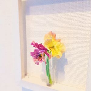 買っていった花、母に頼んだら嬉しそうに花瓶に生けてた。春の香りするね٩(๛ ˘ ㅅ˘)۶クンクン♡