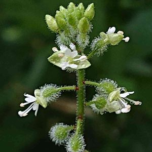 ミズタマソウ見っけ‼️💕 まだ花序を伸ばしたばかりなのか、産毛みたいなのに覆われてます。 そんなに花は大きくないので、漫然と見ていると見過ごしてしまいますね。 じっくり見るととっても可愛いし、☔️や雨の後、毛が生えてる子房に水玉がぶら下がってとっても可愛いpicが撮れますね✌️😆
