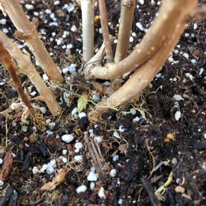 アナベルの鉢植えから、新芽発見🌱✨✨ 嬉しい〜♪ まだ寒くなるみたいだから、なんとか頑張ってほしい〜!!