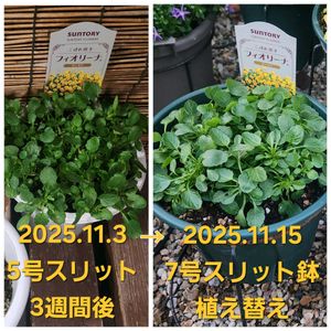 2025.11.15 フィオリーナゴールドを 7号スリット鉢に植え替え(鉢増し)しました~✨☀️✨ φ(..) 2025.10.13 5号スリット鉢植え付け