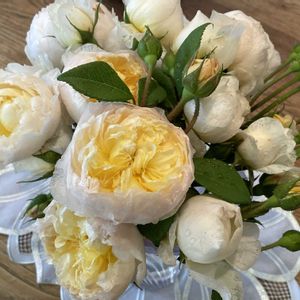 ①②朝日を浴びて光るガブリエル 今年はずっと雨ざらしでスパルタだったからか、株が大きくなる方に力が入っていたのか、お花が小ぶりです💦 でもやっぱりガブリエルはガブリエル💓 香りも高く、高貴な姿です🥰 ③レイニーブルー 立体花壇でこぼれ落ちるように咲くレイニーブルー💓 をやりたくて、作りました☺️ 春はもっと溢れるように咲きますよ〜😁 ④Rosaツン グリガデのプレートの横でひっそり可愛く咲いてました💕 日当たりガンガンの所なので、今年は葉っぱが焼けてしまったりと、ダメージありましたが、可愛く咲いてくれました😊 ⑤夜来香 いつもに比べると巻きが浅め… 夏のダメージ⁉️ 今年は土を替えてあげよう 去年はバッコンボーで済ませました
