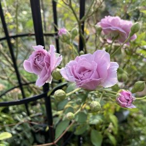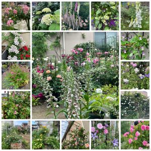 ①こぼれ種で小庭からGardenの方に咲き始めたチドリソウ どこまでも飛ぶのね😳 色とりどりのお庭が、バラから紫陽花や宿根草のお花の色に変わりつつあります ②ラグランジア クリスタルベール お庭を見にみえた方にとても評判が良かった 枝垂れ咲きしてボリュームもあってゴージャス💓 ③最後に咲くバラパシュミナ 地植えにしてもこれは変わらず 自分の咲くタイミングがよくわかっているのね☺️ ④憧れてたジューンベリー🥰 お庭に赤い実のなる木が植えたかったので、この風景はめちゃお気に入り💓 まだ地植えにはしてないのだけど… 今朝熟した実を摘んで、ワイルドストロベリーと一緒に孫たちに持っていったら 👦🏻ジーンベリー、ジーンベリー 一粒ずつ食べながら名前を言って、覚えようとしてました 2歳児の発音、めちゃ可愛い💕 ⑤フロレンティーナ 元株は娘のお庭にあるのだけど、うちにも赤いバラが欲しくて挿し木しました オベリスク仕立てと、フェンスに誘引 開花時期が少し遅いので、寂しくなってきたお庭がパッと華やかです😊👍