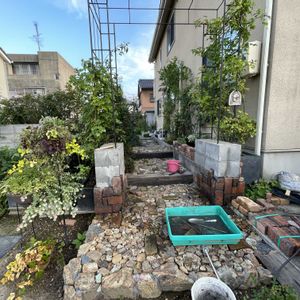 ①癌腫になったクロッシェ この春は調子悪くて素敵なお花は一つも咲きませんでした💦 摘蕾逃れなんです こんなに可愛かった🥰 咲いてくれてありがとう💓 ②③今日はお休みだったので、午前中はアーチのレンガ貼り 足りなくなってホームセンターに買い出し…本日はここまで ④レイニーブルーがこぼれ落ちる立体花壇 周りの土を削りとって、レンガと石を積んだ時により高さが出せるように👍 こちらもそろそろ始めていきます ⑤お庭のノリウツギ 地植えにして、株がずいぶん大きくなりました お花もたくさん咲いてくれて、このライムグリーンが素敵💓 葉っぱは毎日コガネムシが鈴なりになってる😅💦😱 美味しいのかしらね
