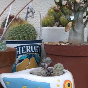 窮屈になったアイコンのサボテン🌵を植え替え、お気に入りの鉢へ 福だるま、星の王子と一緒に… カッコよく
