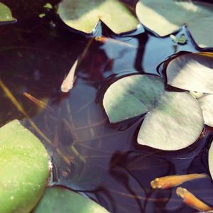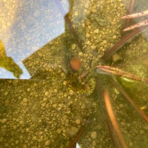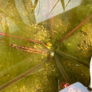 ✩.*˚温帯睡蓮✩.*˚ 玄関先のビオトープで初めてつぼみを発見!!! 3年目にしてやっと!! 花色おまかせの株を購入したので咲くまでのお楽しみ(∩´∀`∩)♡ ※わかりにくいですが、白いメダカの下あたりにつぼみがあります☺︎︎