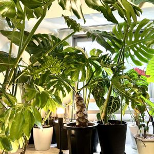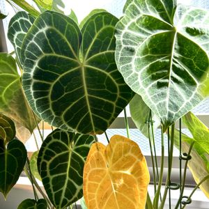 モーニングジャングル😊今日も1日良い日でありますように😊 🪴アロカシアゼブリナアティキュラータ 🪴モンステラデリシオーサ 🪴アンスリウム原種クラリネルビウム😊 🪴フィカスウンベラータ