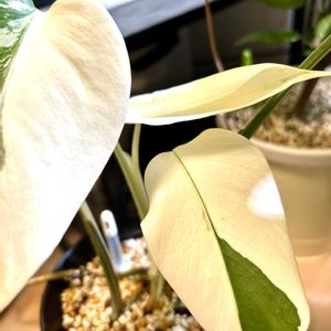 新芽🌱お気に入り😃モンステラホワイトタイガー🐯新芽は真っ白びっくり🫢光合成できるのかな? 斑入りモンステラ(バリエガータ)の主な人気品種をご紹介します。 🌿 白い斑(白斑)が入る系統 この系統は、深い緑と純白のコントラストが非常に美しいのが特徴ですが、白い部分は光合成能力が低いため、通常の緑葉のものよりデリケートな管理が必要です。 • ボルシギアナ・アルボ・バリエガータ(通称:ホワイトタイガー) • 特徴:深い緑の葉に、ペンキを散らしたような純白の斑が不規則に入ります。 • 分類:ボルシギアナ系のため、茎は細く、つる性の性質が強い傾向があります。 • 注意点:斑の入り方が不安定になりやすく、育成難易度はやや高めです。 • デリシオーサ・アルボ • 特徴:デリシオーサ(太い幹、大きな葉)の変異種で、純白の斑が入ります。 • 分類:ボルシギアナ系よりも葉が大きく、より肉厚な傾向があります。 • ホワイトモンスター(テンシンラン) • 特徴:広範囲にわたり白やクリーム色の斑が強く入り、時には葉全体がほぼ真っ白になる部分が現れることもあります。 🌟 黄色・クリーム色の斑(黄斑・散斑)が入る系統 この系統は、黄色やクリーム色の斑が入り、白斑の品種と比べて斑が安定しやすい傾向があります。 • タイコンステレーション(通称:タイコン) • 特徴:葉全体にクリーム色や黄みがかった斑が、まるで星を散りばめたように細かく入ります。 • 流通:タイで組織培養により作出された品種で、斑が安定しているため非常に人気があります。 • 分類:デリシオーサ系の特徴を持つことが多いです。 • デリシオーサ・オーレア(通称:イエローモンスター) • 特徴:鮮やかな黄金色や黄色の斑が、大理石のようなマーブル模様を描き出すのが特徴です。 • イエローマリリン • 特徴:濃い緑の葉に、明るい黄色やクリーム色の不規則な斑が入り、鮮やかなコントラストを楽しめます。 斑入りのモンステラは、どの品種も通常のモンステラよりも葉焼けしやすく、また**暗すぎると斑が消える(先祖返り)**ことがあるため、管理には特に注意が必要です。