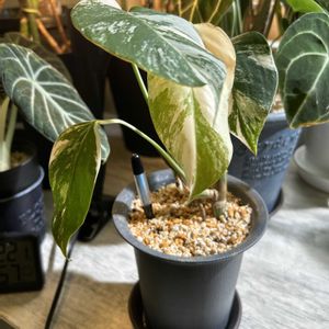 お迎え😊お気に入りのモンステラホワイトタイガーさんをポチッとしました😊小苗ですが大きくなるのが楽しみです〜😊 斑入りモンステラ(バリエガータ)の主な人気品種をご紹介します。 🌿 白い斑(白斑)が入る系統 この系統は、深い緑と純白のコントラストが非常に美しいのが特徴ですが、白い部分は光合成能力が低いため、通常の緑葉のものよりデリケートな管理が必要です。 • ボルシギアナ・アルボ・バリエガータ(通称:ホワイトタイガー) • 特徴:深い緑の葉に、ペンキを散らしたような純白の斑が不規則に入ります。 • 分類:ボルシギアナ系のため、茎は細く、つる性の性質が強い傾向があります。 • 注意点:斑の入り方が不安定になりやすく、育成難易度はやや高めです。 • デリシオーサ・アルボ • 特徴:デリシオーサ(太い幹、大きな葉)の変異種で、純白の斑が入ります。 • 分類:ボルシギアナ系よりも葉が大きく、より肉厚な傾向があります。 • ホワイトモンスター(テンシンラン) • 特徴:広範囲にわたり白やクリーム色の斑が強く入り、時には葉全体がほぼ真っ白になる部分が現れることもあります。 🌟 黄色・クリーム色の斑(黄斑・散斑)が入る系統 この系統は、黄色やクリーム色の斑が入り、白斑の品種と比べて斑が安定しやすい傾向があります。 • タイコンステレーション(通称:タイコン) • 特徴:葉全体にクリーム色や黄みがかった斑が、まるで星を散りばめたように細かく入ります。 • 流通:タイで組織培養により作出された品種で、斑が安定しているため非常に人気があります。 • 分類:デリシオーサ系の特徴を持つことが多いです。 • デリシオーサ・オーレア(通称:イエローモンスター) • 特徴:鮮やかな黄金色や黄色の斑が、大理石のようなマーブル模様を描き出すのが特徴です。 • イエローマリリン • 特徴:濃い緑の葉に、明るい黄色やクリーム色の不規則な斑が入り、鮮やかなコントラストを楽しめます。 斑入りのモンステラは、どの品種も通常のモンステラよりも葉焼けしやすく、また**暗すぎると斑が消える(先祖返り)**ことがあるため、管理には特に注意が必要です。