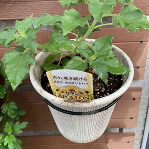 キャンペーン当選のアポロンです。 適当なポットがあいにく空きがなく。 とりあえずで小さな素焼きの鉢で育てています。 昨日、安くて大きいポット見つかったのて、何個か購入! 黄色のが10号、ブラウンが8号鉢。 かなり大きいポットに見えて、かさ増しの発泡スチロールを敷き詰めて準備中です。