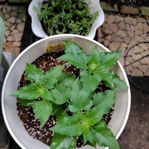 植え付けから1週間後 鉢底から根っこが(^_^;) 生育旺盛www 大きい鉢に植え替えました。