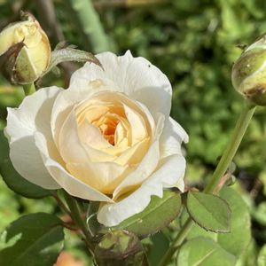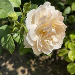 お盆前の大雨の時気温が下がって元気を取り戻したバラ達が咲いてます✨咲いたらまた高温でびっくりしてるでしょうね💦 ①クロッシェ 昨年枯れる一歩手前まで行ったけど復活しました🌹綺麗です✨ ②エターナル 波状の花びらが好きです🥰 ③サイラス•マーナー 梅雨頃に強風で倒れ、メインのシュートが付け根からポッキリ折れた時は心配しましたが、栄養が分散してかえって良かったみたいです(^^) 良い形で蕾が沢山ついてます✨